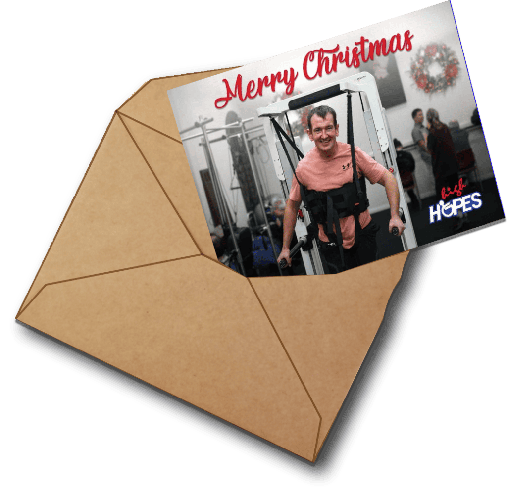 Every year, we send a Christmas card to everyone who lifts High Hopes. This season, you can help our circle grow. Download our Christmas card and share it with someone who would love to be part of the High Hopes family. A simple share can spark life changing support for brain injury survivors.